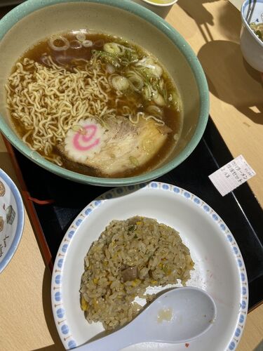 富山への道程で、長良川SAで昼食。 折角だからと、フードコートの自販機で高山ラーメンと炒飯のセットを購入。 カウンターに持って行くと「台湾ラーメン炒飯セット」と復唱される。 ボタン間違えた!事情を話すと「はーい。変更しますね」と。優しい。 で、…