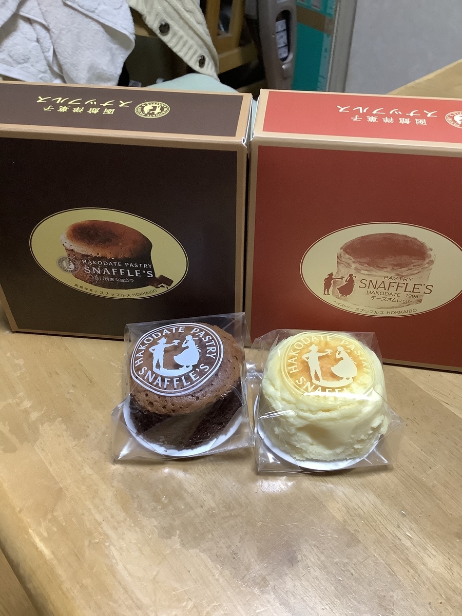 北海道と言えば「ルタオ」の小員だが、残念ながらルタオのチーズケーキは販売されておらず、スナッフルスという一口サイズのチーズケーキとチョコケーキ¥1,550円を購入。